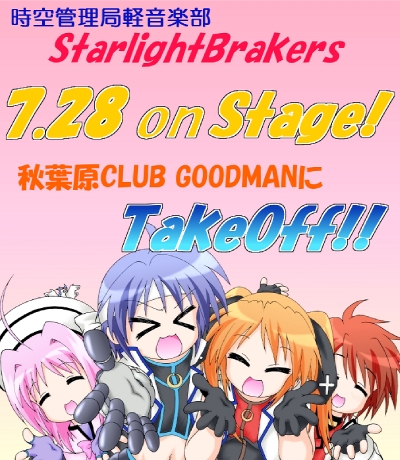 何故に更新出来なかったかと言うと…、来たる7/28(土)、僕の所属しております魔法少女リリカルなのはコピーバンド、その名も『時空管理局軽音楽部 Starlight Brakers』…ライブ出演が決定致しました!